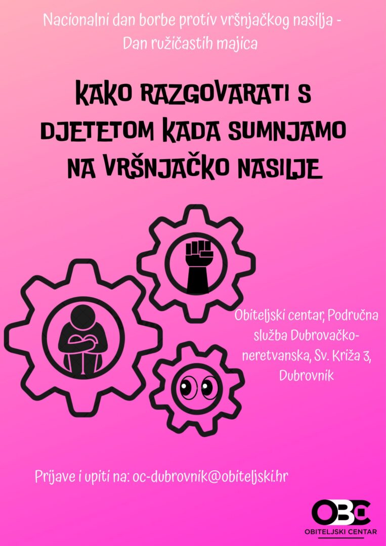 Povodom obilježavanja Nacionalnog dana borbe protiv vršnjačkog nasilja još poznatog i kao Dan ružičastih majica Obiteljski centar vas poziva na interaktivno predavanje