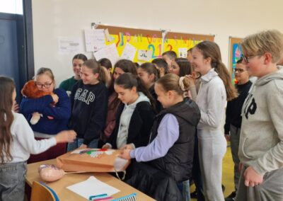 Naši su učenici s puno pažnje i ljubavi pripremili malo iznenađenje za svoju prijateljicu iz razreda. Poklon koji su joj uručili nije bio samo dar, već poruka prihvaćanja, prijateljstva i iskrene brige. Njezin osmijeh, radost i sjaj u očima rekli su više od tisuću riječi.
